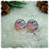 Ohrringe in 16 mm schwarz weiß gemustert mit rosa Blüte