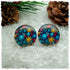 Ohrringe blau mit roten und blauen Weihnachtskugeln und goldenen Schneeflocken